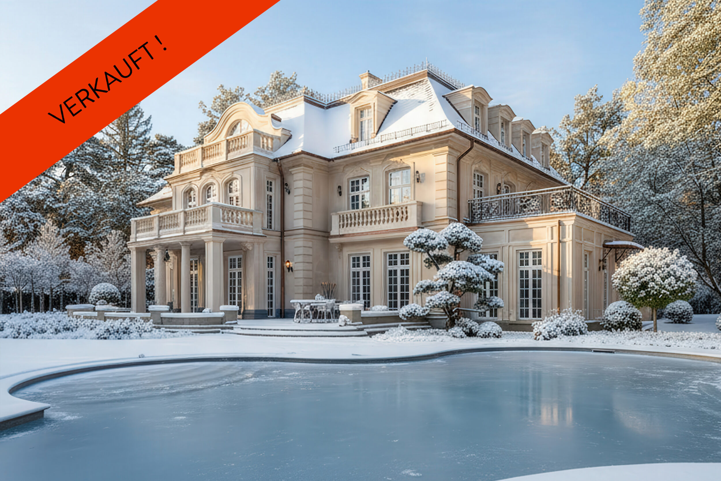 Auf einem ca. 4000 m² großen Parkgrundstück, umsäumt von einzigartigem Baumbestand, thront uneinsehbar und privat das architektonische Meisterwerk. Das Anwesen verfügt über eine Wohnfläche von ca. 1000 m², ein Gästehaus, Garagenhaus sowie über einen imposanten Aussenpool mit Freisitz und Aussenküche.
